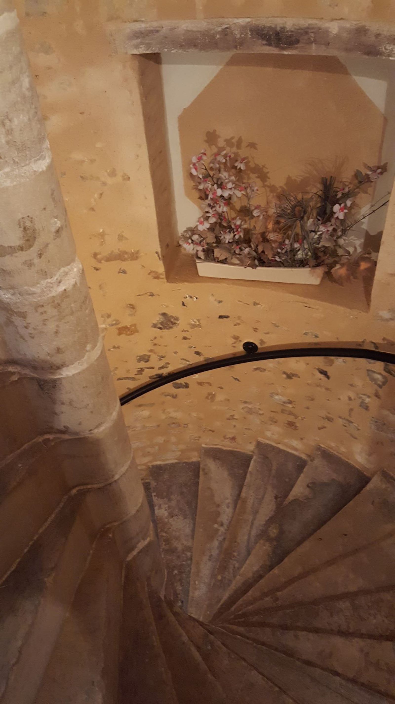- Escalier à vis en pierre dans les communs, ajoutant une touche d’authenticité et de caractère à l’immeuble.